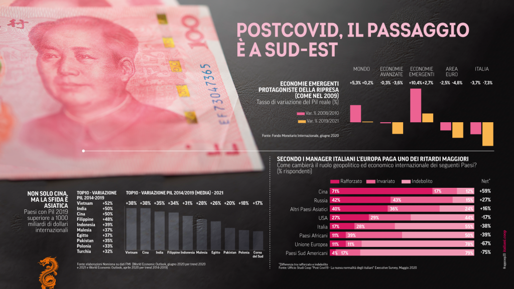 Nuovo Mondo, Nuova Europa- Un nuovo mondo (e una nuova Europa) si intravedono all’indomani della pandemia che, simile a uno tsunami, ha invaso e alterato le nostre vite generando un contraccolpo economico violentissimo e delineando al tempo stesso una traiettoria incerta e sospesa di futuro. Niente a che vedere con le crisi del recente passato e piuttosto paragonabile agli effetti generati dall’ultimo conflitto bellico, sull’altare del Covid si sono volatilizzati 12.500 miliardi di dollari di Pil mondiale in un anno, sono 170 i Paesi che subiranno una contrazione del Pil procapite nel 2020 (per l’Italia le ultime previsioni si attestano a un -9,5%), e solo nel 2023 (per i più pessimisti nel 2025) il nostro Paese ritornerà ai livelli precedenti la pandemia, peraltro a loro volta lontani dagli standard antecedenti l’ultima grande recessione. E se molti contano sul vaccino come spartiacque per la ripresa tanto da attribuirgli una sorta di valenza salvifica, fanno riflettere quegli 8 milioni di italiani che dichiarano di non volersi vaccinare e comunque di voler attenderne gli esiti.