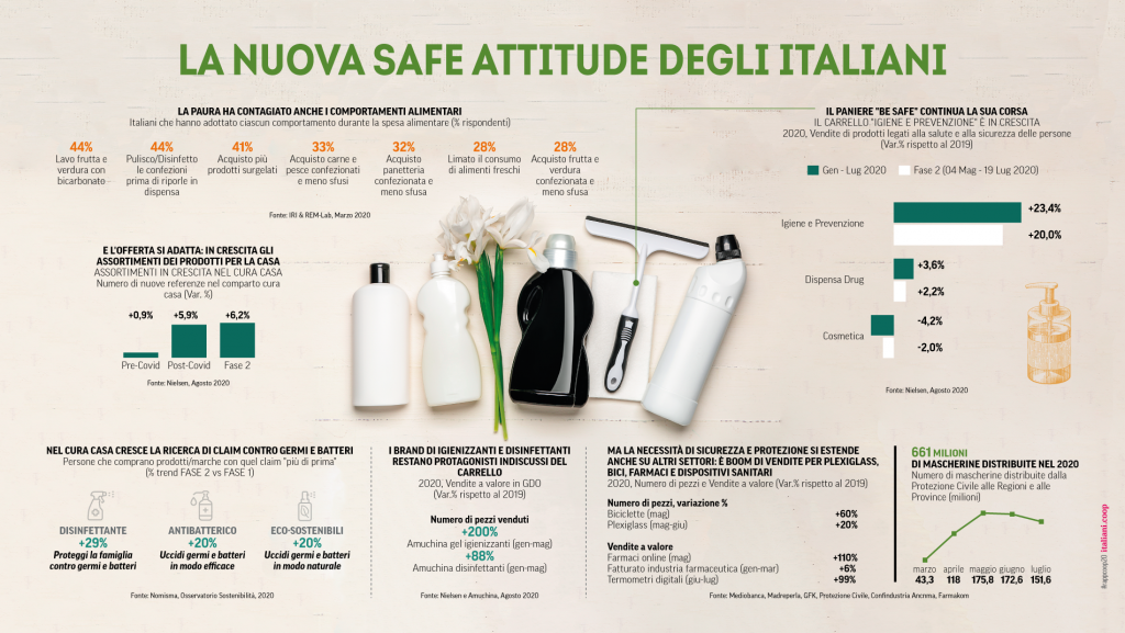 COOP– “E’ indubbio che il Covid abbia cambiato i comportamenti degli italiani come il Rapporto ci racconta. –sottolinea Maura Latini, amministratore delegato Coop Italia- Ci conforta ritrovare in questi mutamenti delle conferme su tendenze già individuate da Coop e su cui ci stiamo posizionando con forza distinguendoci anche dai competitor. La sensibilità green degli italiani in primis su cui stiamo molto investendo e che abbiamo visto riconfermata anche durante e dopo il lockdown nei nostri dati interni. Il nostro marchio di prodotti biologici Vivi Verde è il primo brand bio venduto nella grande distribuzione in Italia con oltre 150 milioni di fatturato nel 2019 e non ha cessato di crescere durante e dopo il lockdown con un trend a valore del +9%. Ma è più in generale tutto quanto attiene al tema sostenibilità e cibo su cui il nostro prodotto a marchio non teme rivali. Voglio ricordare l’impegno che ci siamo presi con i nostri soci e consumatori sia bloccando i prezzi dei nostri prodotti fino alla fine del mese di settembre e l’offerta di 10 dei nostri prodotti al prezzo di 10 euro (“Operazione Forza 10”). Il prezzo volutamente conveniente (sconto medio del 37% rispetto al prezzo normale) non deve distogliere dal valore dei singoli prodotti che hanno tutti la garanzia Coop, la tracciabilità e l’aggiunta di caratteristiche uniche (è il caso dell’antibiotic free o del controllo etico sulla filiera). Operazione peraltro molto apprezzata; le 10 referenze in 3 mesi hanno registrato vendite di 9,5 milioni di euro, con quantità doppie rispetto allo scorso anno, con punte di crescita del +300% o oltre. Continueremo a lavorare in questa direzione sia sull’offerta, potenziando l’assortimento con prodotti Coop avanzati e innovativi sul versante della qualità e della sostenibilità, convenienti ed accessibili alle fasce deboli della società. Ma ripenseremo anche i nostri punti vendita seguendo la logica delle nuove necessità mostrate dagli italiani: qui la scommessa non è offrire un servizio in più e mantenere lo status quo dell’offerta tradizionale, viceversa è rimettersi in gioco”.